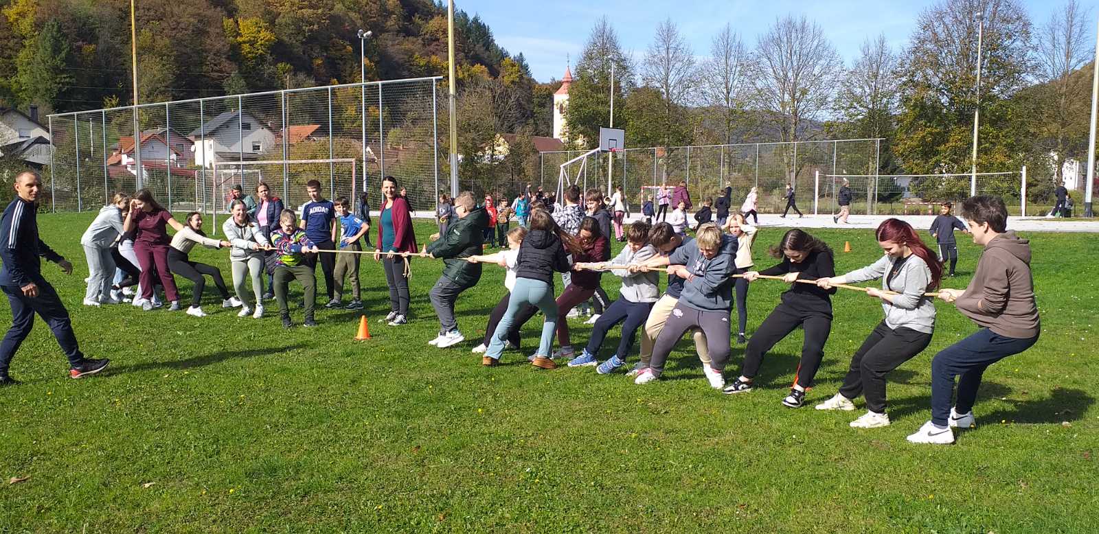 Poseban ugođaj stvarao je miris pečenih kestena koje su za sve pripremili naši domari. Za kraj, učenici su se zabavili u tradicijskim seoskim igrama – skakanju u vrećama, vožnji “živih tački” i potezanju užeta, što je izazvalo veselje i navijanje svih prisutnih.