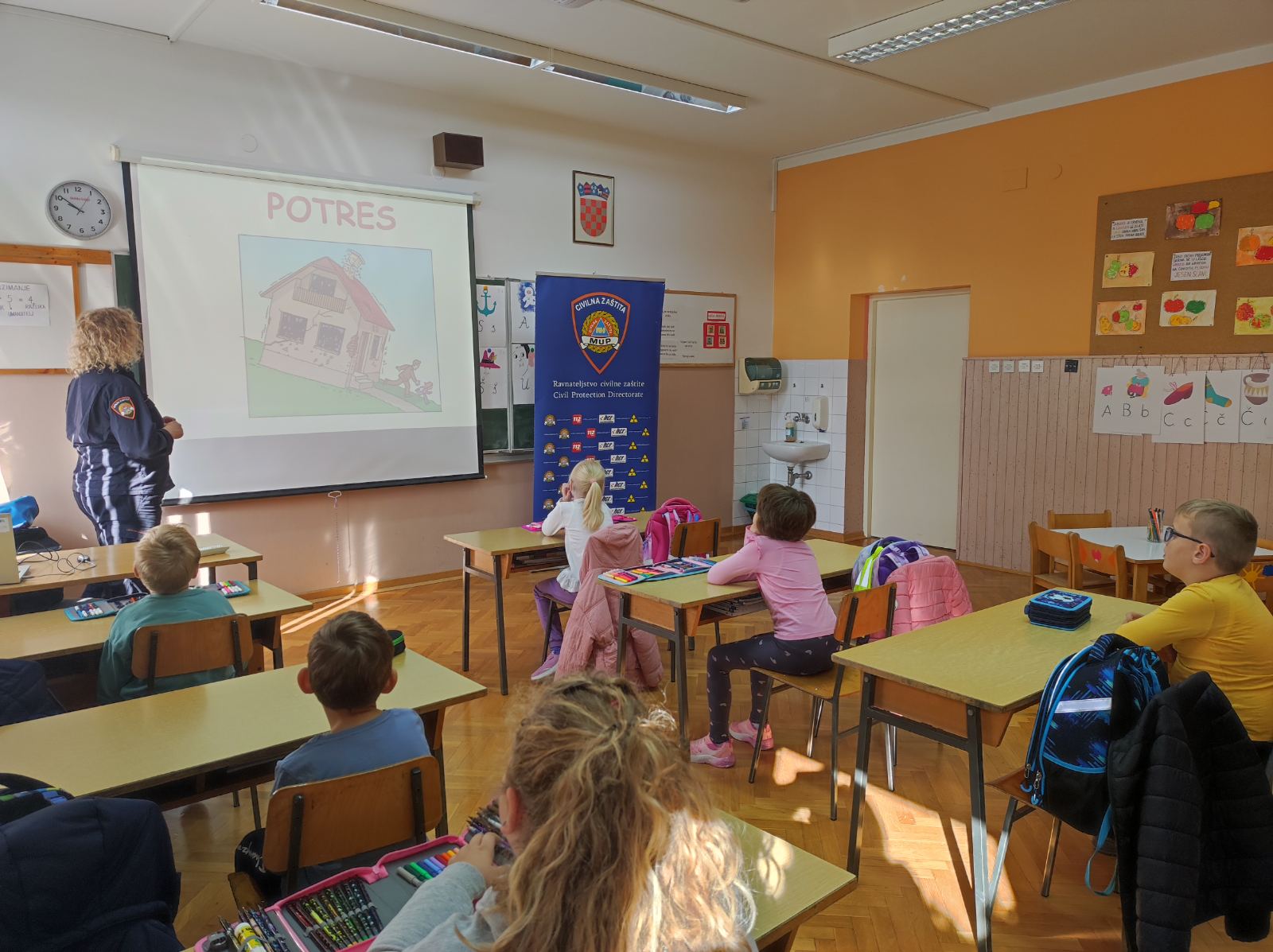 Kroz prezentaciju pod nazivom „Naučimo više o smanjenju rizika od katastrofa!“, učenici su se upoznali sa svim žurnim službama koje im mogu pomoći u opasnim situacijama te su saznali kakve nas sve katastrofe mogu zadesiti, bilo prirodne, bilo one izazvane ljudskim djelovanjem. Poseban naglasak stavljen je na pravilan način postupanja u pojedinim vrstama nesreća – od potresa i poplava do požara i prometnih nezgoda.